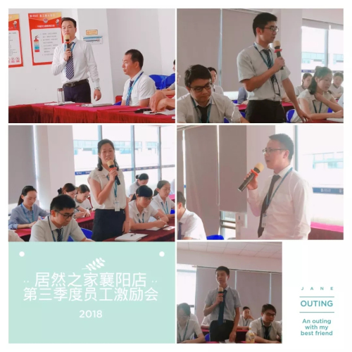 為鼓勵(lì)襄陽(yáng)店全體員工再接再厲,鼓足干勁迎接第三季度的工作任務(wù),居然之家襄陽(yáng)店特召開(kāi)2018年第三季度“總結(jié)經(jīng)驗(yàn)、激情向前”員工激勵(lì)大會(huì),襄陽(yáng)店總經(jīng)理李思強(qiáng)組織大家一起梳理工作思路,總結(jié)第二季度工作中的經(jīng)驗(yàn)和不足,明確第三季度工作方向!