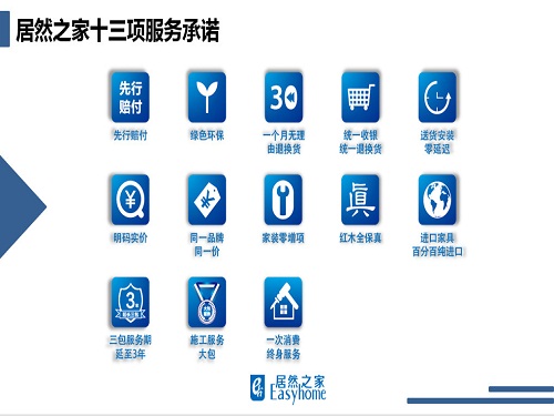 作為家居建材行業(yè)的龍頭企業(yè),居然之家發(fā)家于服務(wù),一直踐行著“讓家裝和家居服務(wù)快樂簡(jiǎn)單”的企業(yè)使命,從2000年以來(lái),居然之家累計(jì)推出了13項(xiàng)服務(wù)承諾,以優(yōu)質(zhì)的服務(wù)為消費(fèi)者創(chuàng)造的良好的購(gòu)物體驗(yàn),維系著一批又一批的新老顧客。